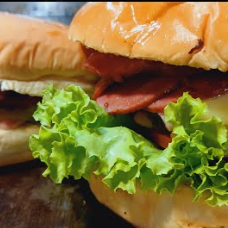 Pão Bola, Carne, Ovo, Bacon, Queijo, Presunto, Salada e Batata Palha