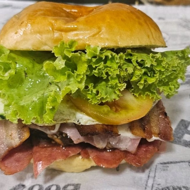 Pão.carne120gm,ovo.queijo.presunto.bacon.salada.molho especial, batata palha