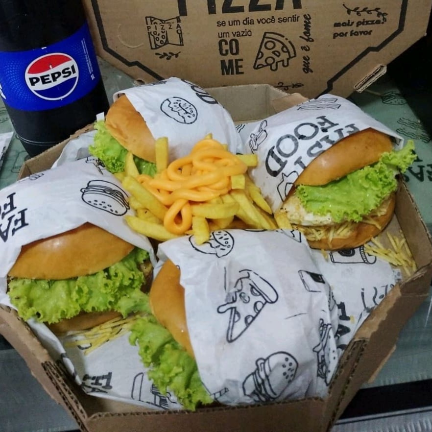4 hambúrguer especial, 1 batata com cheddar, 1 refrigerante de 1 Lt