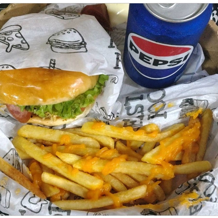 1 hambúrguer especial, 1 batata frita com cheddar, 1 refrigerante lata