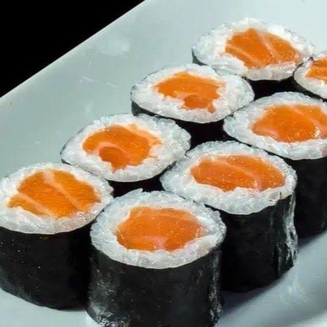 Hossomaki de Salmão: (10 unidades) enrolado de arroz japonês com alga por fora, cream cheese e recheio de salmão)