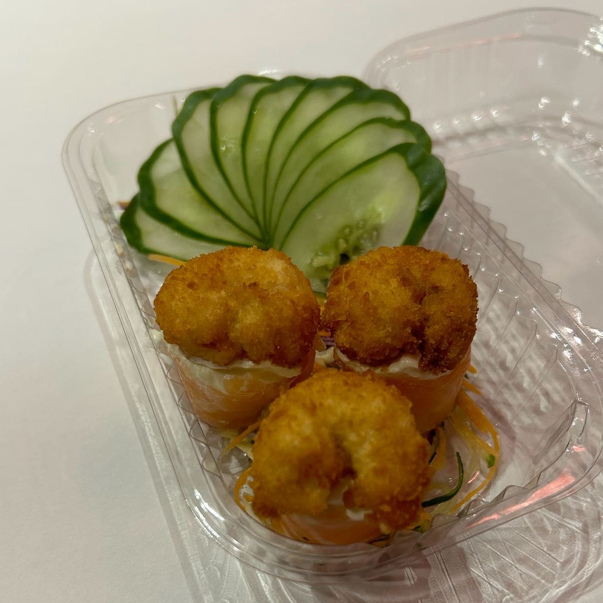 (Enrolado de arroz japonês, cream cheese com recheio de camarão), empanado e frito.