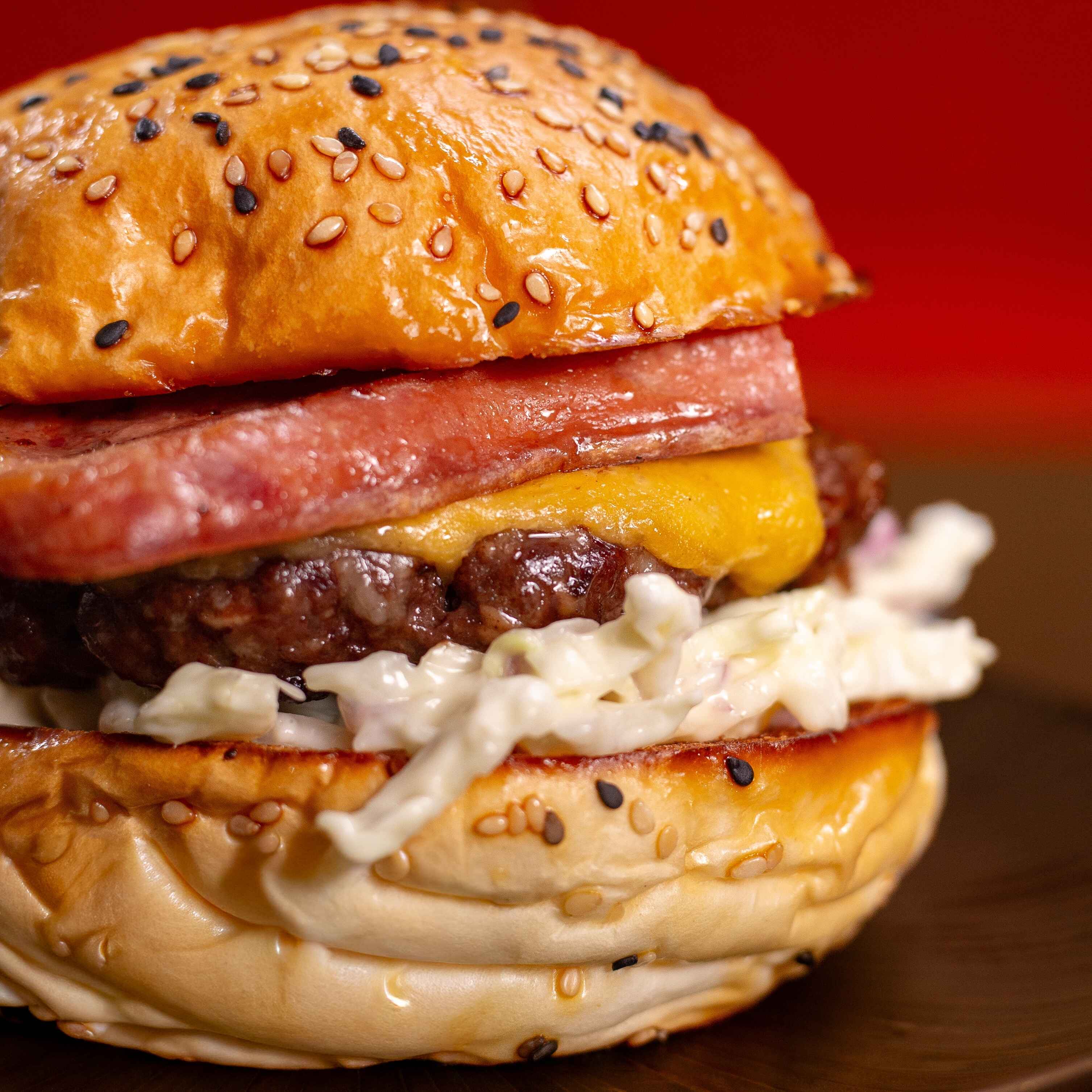 Pão com gergelim, blend bovino 150g na brasa, queijo prato, calabresa e salada de repolho americana.