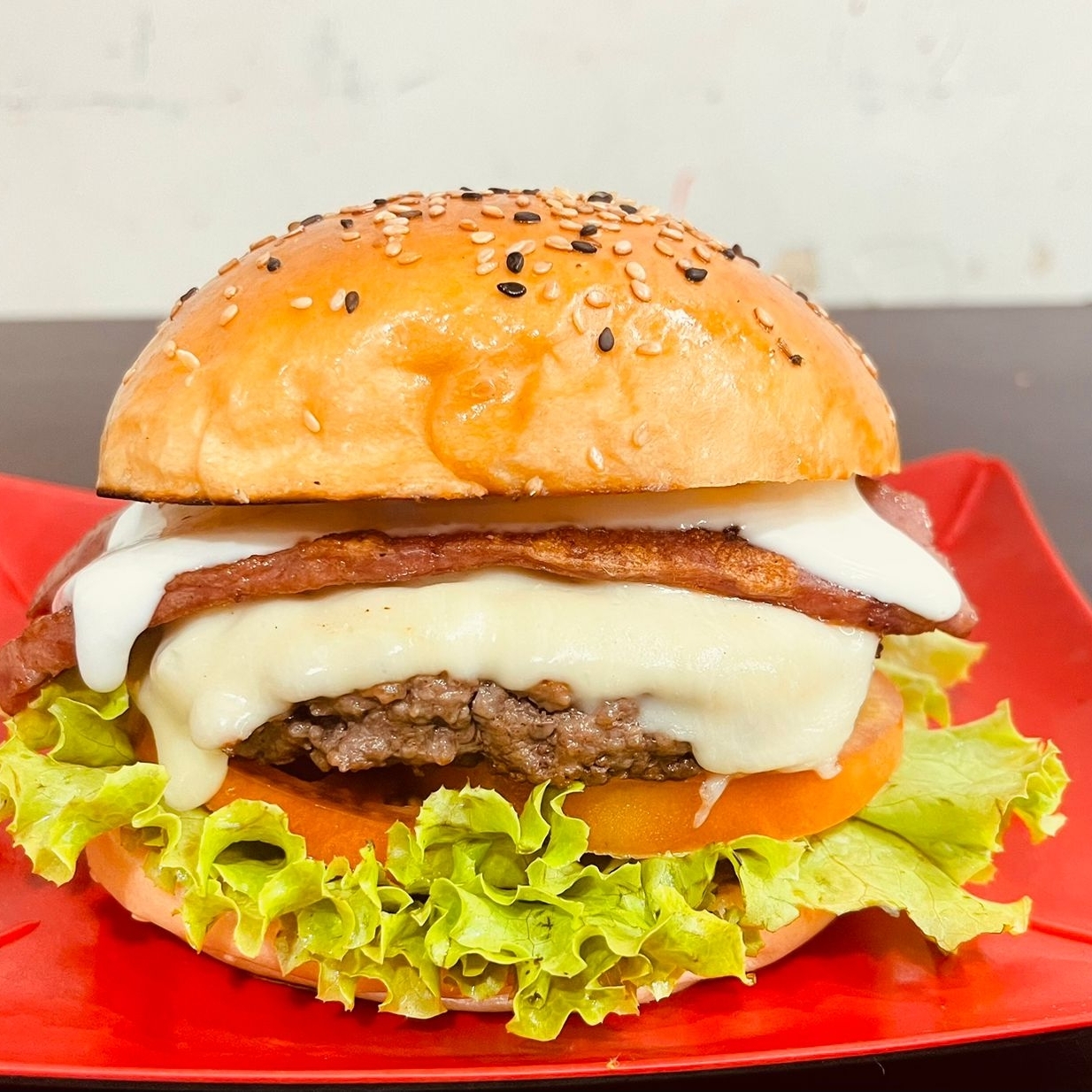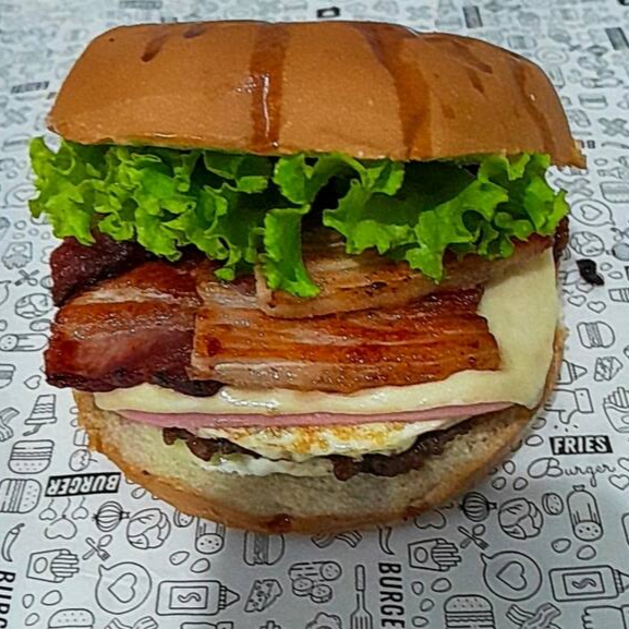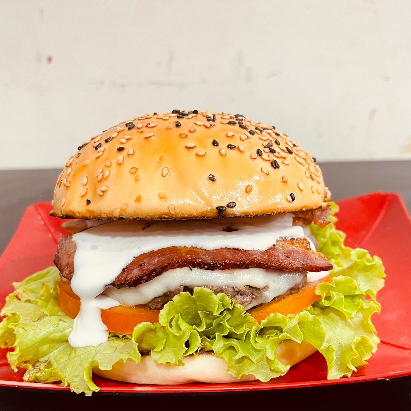 Pão 2 carne 100g 2 ovos salada molho da casa