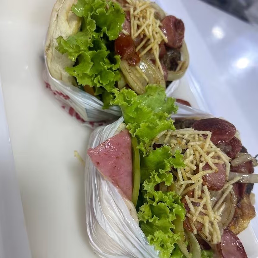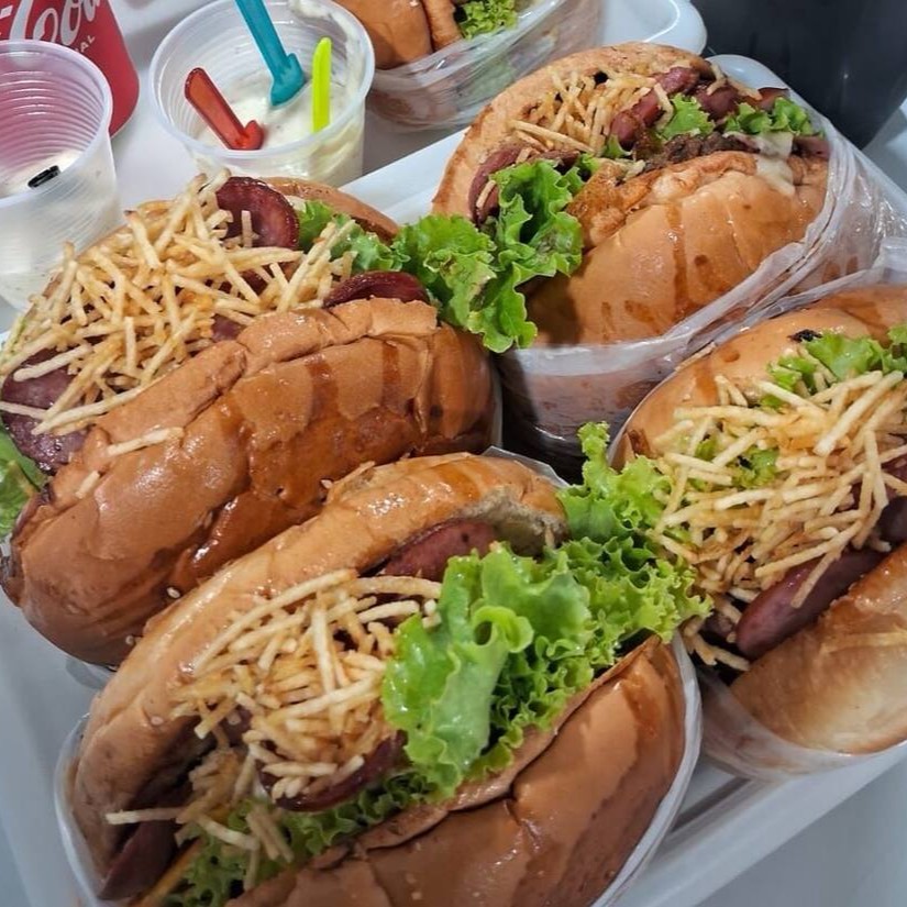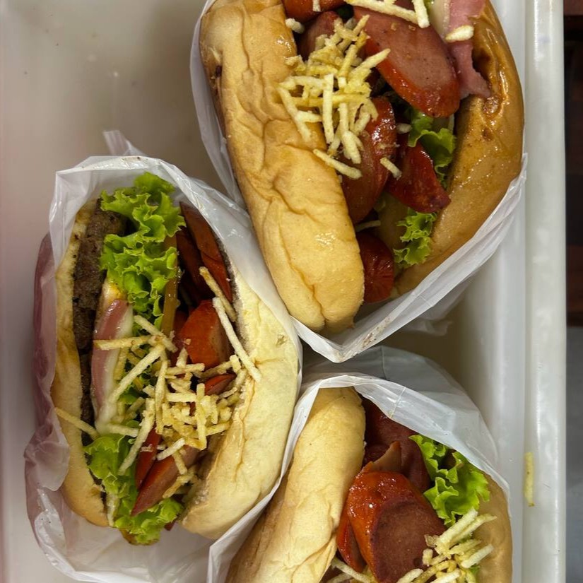 Desfrute do X-Calabresa, com pão bola, carne, calabresa, queijo, presunto, salada e batata palha, uma explosão de sabores.