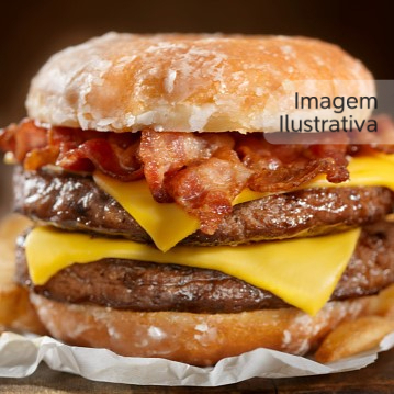 Aprecie o hamburguer duplo especial, com 2 carnes, 2 ovos,queijos, presuntos, calabresa, bacon, batata palha e salada, uma delícia em dobro.