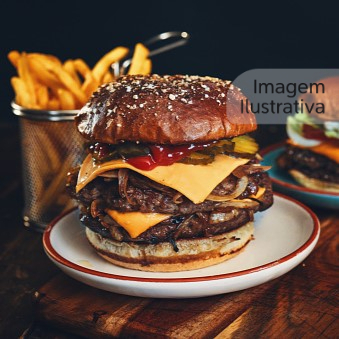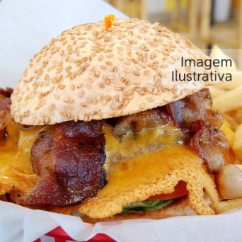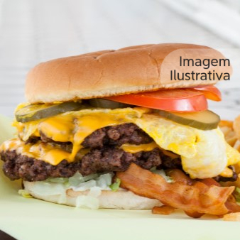 Desfrute do hamburguer especial, com pão bola, carne, ovo, queijo, presunto, calabresa, bacon, salada e batata palha, uma explosão de sabores.