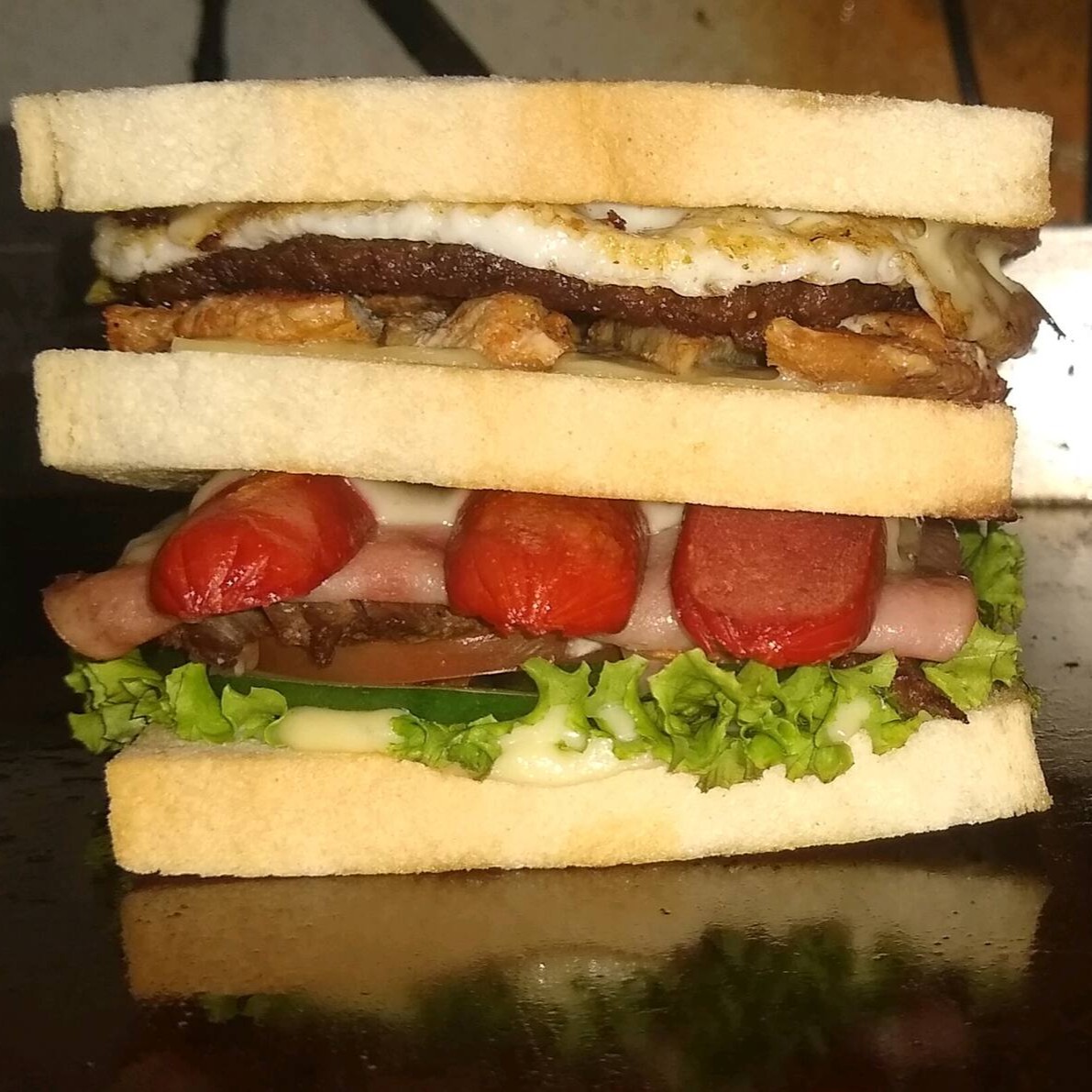 3 Fatias de Pão Forma, 4 Fatias de Queijo, Carne, Ovo, Presunto, Salada