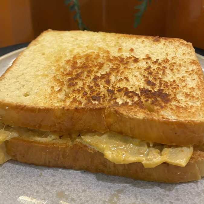 Biscoito com manteiga, doce de leite, banana caramelizada e chantilly.