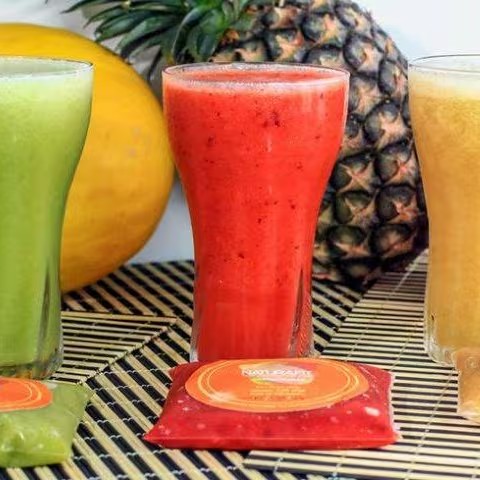 Suco natural de polpa com açucar orgânico, copo de 400 ml.