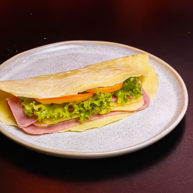 Queijo mussarela, presunto de peru, toque de orégano e salada.