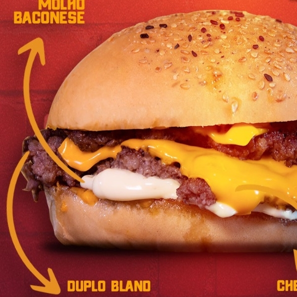 PÃO, 2 CARNE 90G, 2 QUEIJO CHEDDAR E MOLHO BACONESE