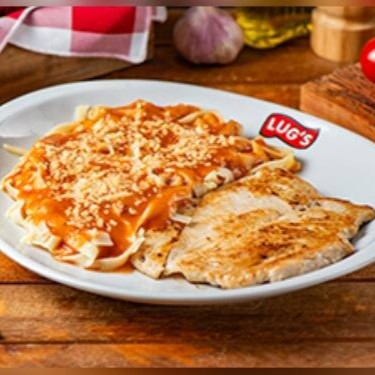 Delicioso fetuccine ao molho promodoro artesanal com parmesão com filé de frango