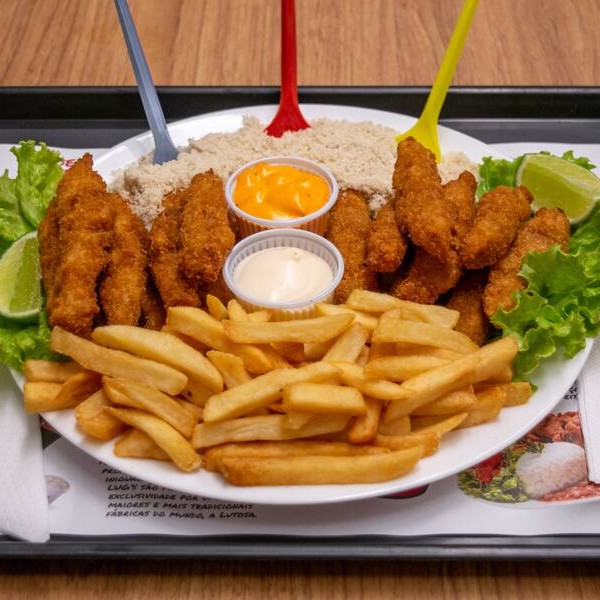Escolha 1 ou 2 dos melhores cortes do Frango. Eles são temperados com a exclusiva receita do Lugui e fritos na temperatura ideal para que ele fique sequinho e crocante, acompanhada com uma porção batata frita nevada por cima da sua porção. Para 2 pessoas.