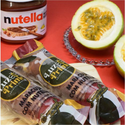Gelato Gourmet Artesanal, é uma sobremesa gelada de textura extremamente cremosa, concebida a partir de lacticínios selecionados. A riqueza do sabor intenso e refrescante do mais suculento maracujá é harmoniosamente combinada ao creme de avelã Nutella, criando uma experiência inesquecível. Uma explosão de sabores que fascina o paladar. Não é à toa que se tornou o nosso carro-chefe de vendas!