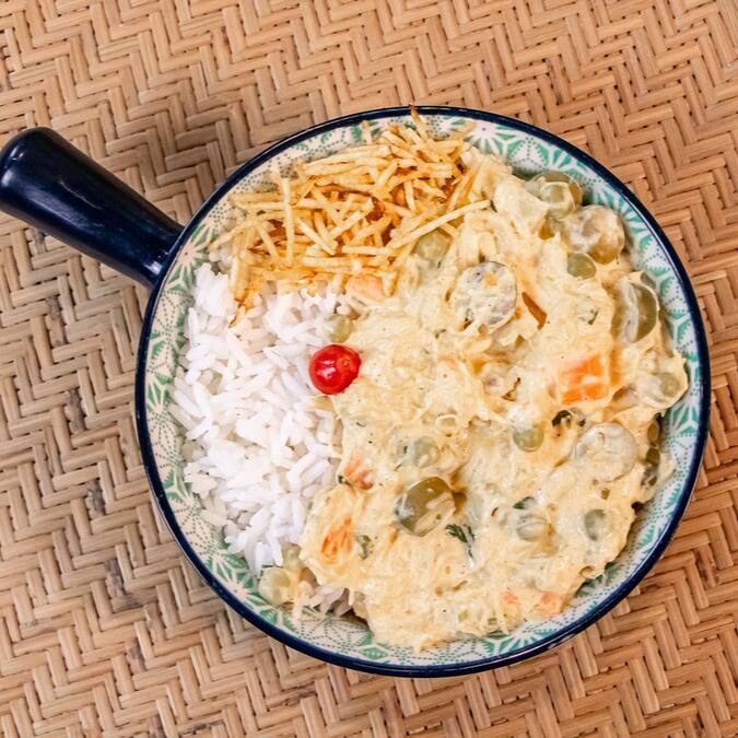 Um deleite picante para o paladar, 'Galinha Picante' é um prato que combina com o arroz perfeitamente soltinho com a suculência do frango cuidadosamente preparado. Além disso, para adicionar uma textura deliciosamente crocante, o prato é finalizado com uma generosa porção de batata palha.