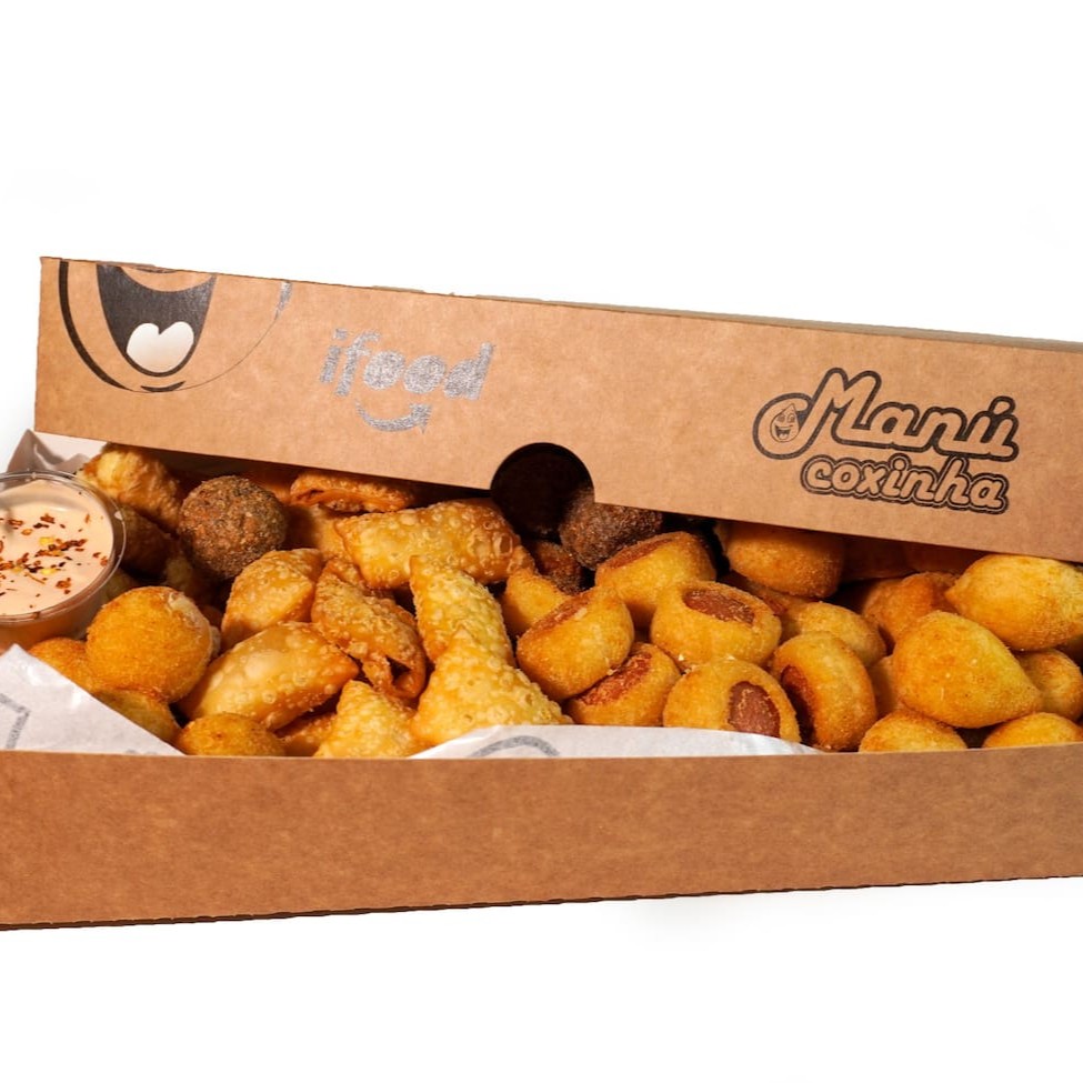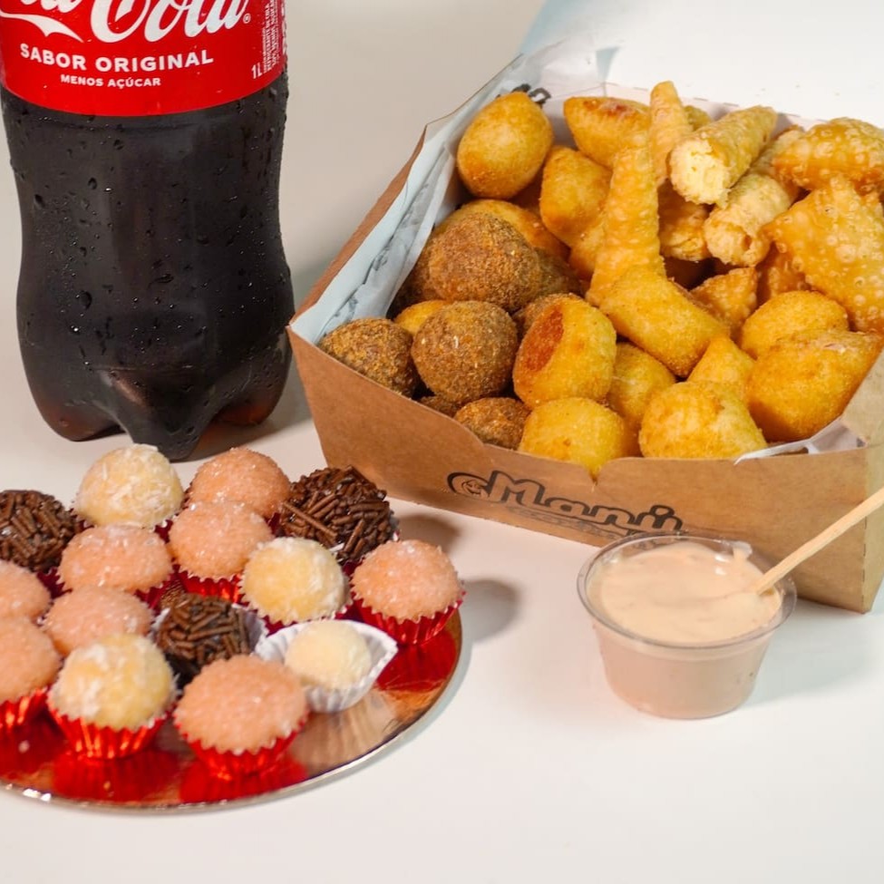 Descubra a festa perfeita! Delicie-se com nossa caixa recheada: 30 salgados irresistíveis, 15 docinhos de dar água na boca. Grátis 1 Refri de 600 ML(Guaraná).
