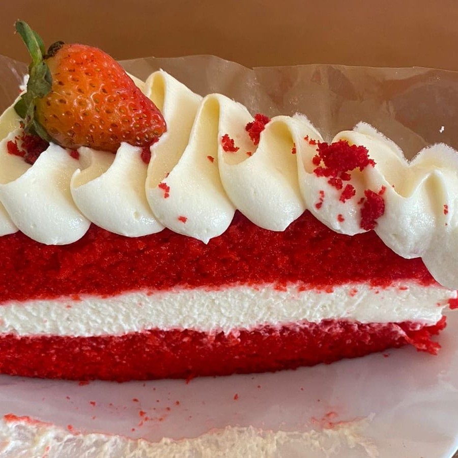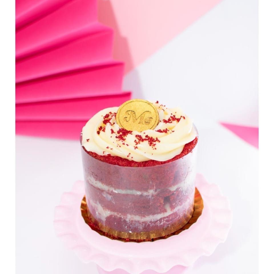 Mini bolo tamanho 8cm, massa Red Velvet e recheio de Ninho. Embalado em embalagem para presente, acompanha 1 velinha.