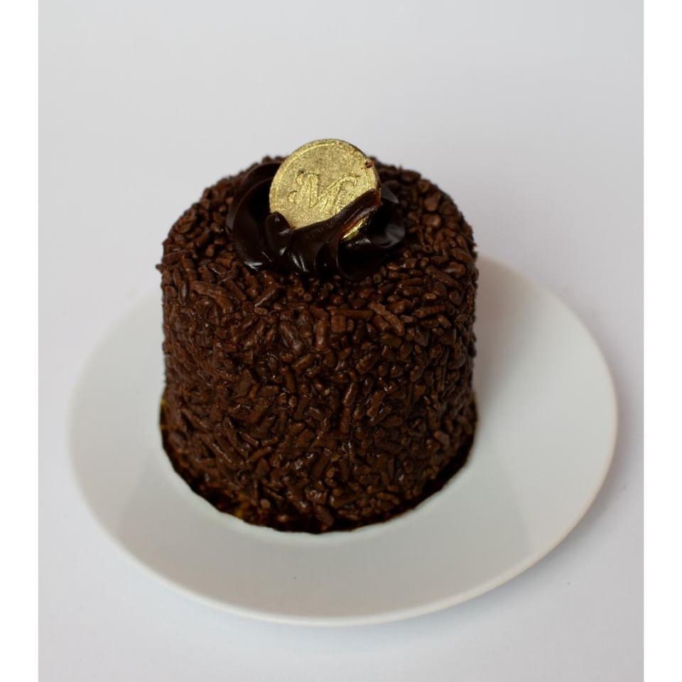 Kit acompanha mini cake 8cm (serve uma pessoa) recheio e cobertura de brigadeiro, caixa com 4 docinhos sabores variados e sacola para presente.
