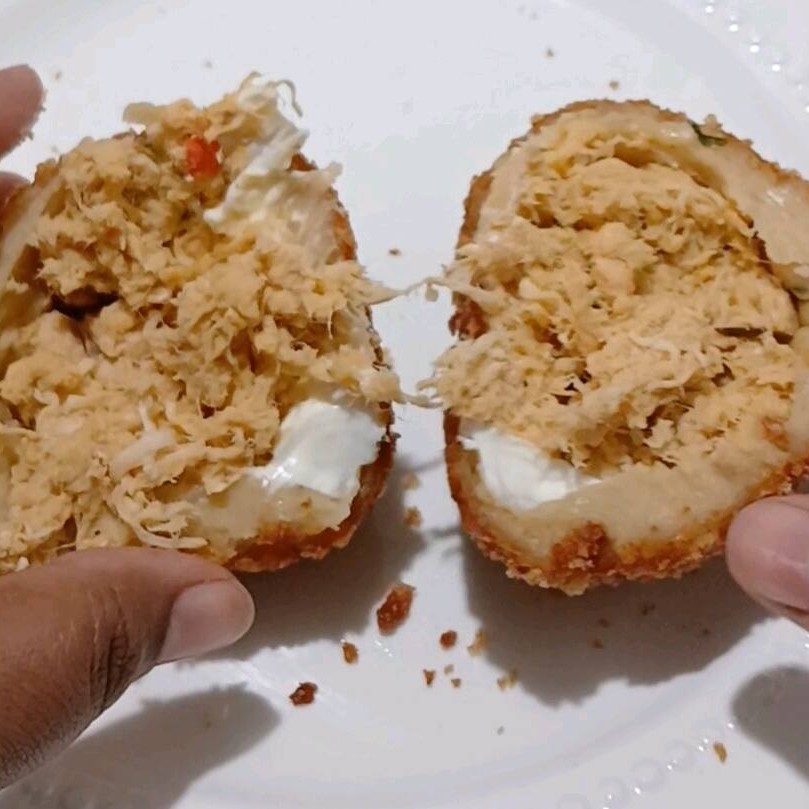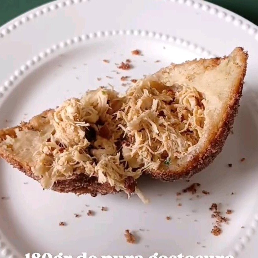 Massa tradicional a base de leite, recheado com frango desfiado e levemente cremoso com creme de queijo,finalizado com farinha panko
