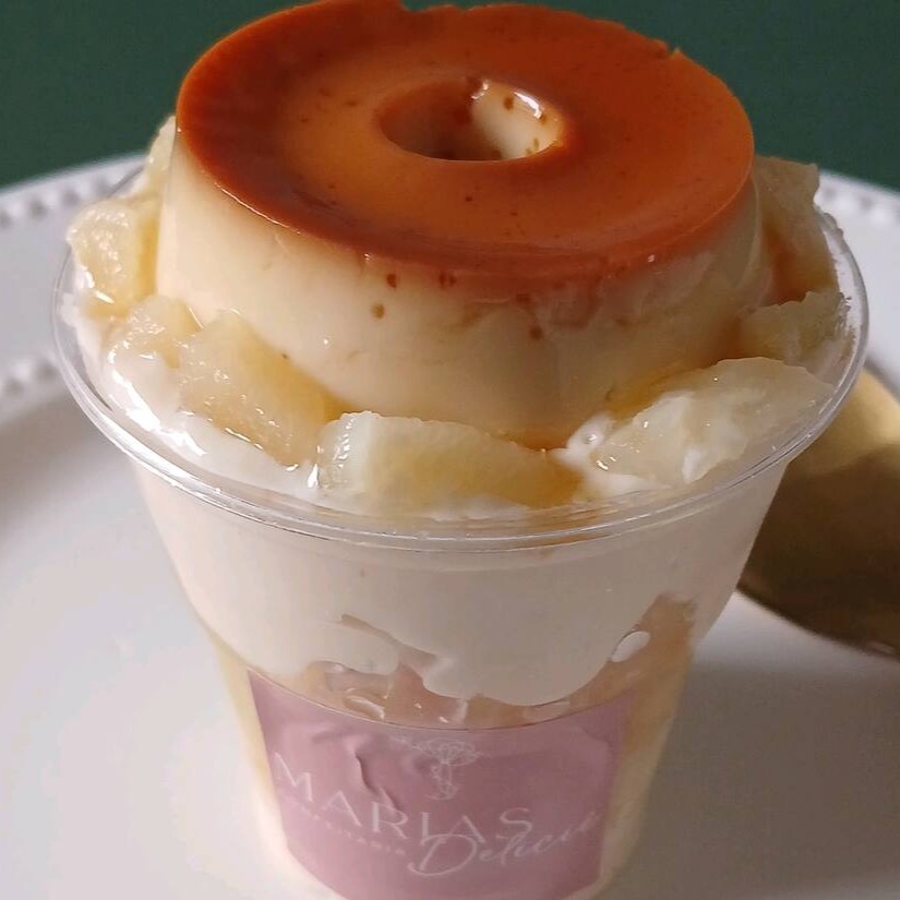 Refrescante e suave,com um creme de brigadeiro branco equilibrado no dulçor, pedaços de abacaxie bolo de baunilha.
