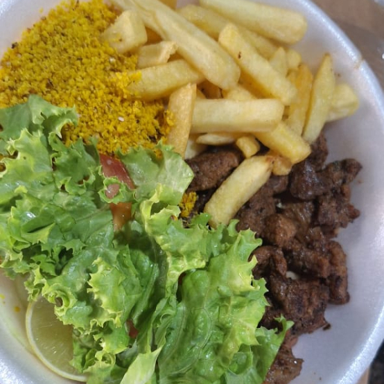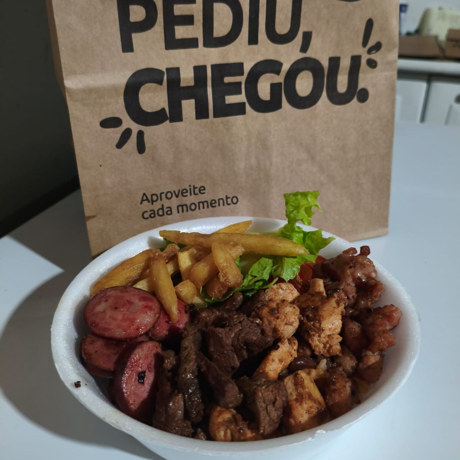 Carne, calabresa, Frango, Toscana ( Baião, salada, Farofa e batata frita).