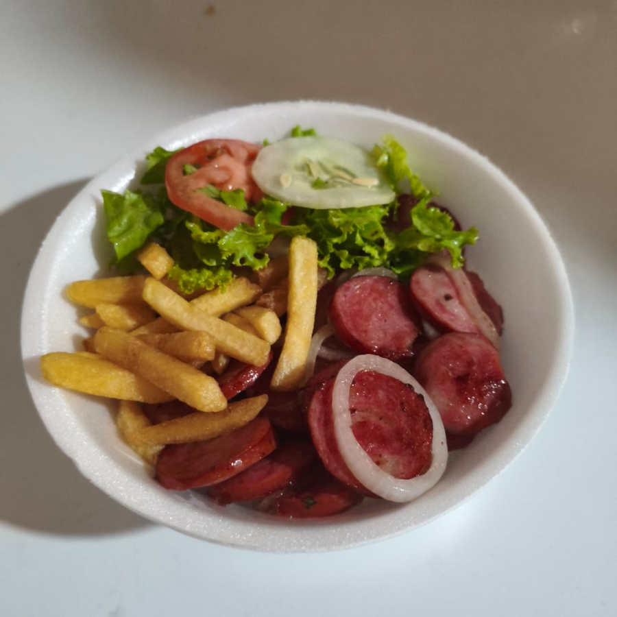 Baião, Salada, Farofa e Batata Frita