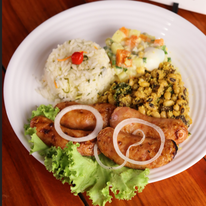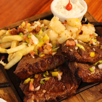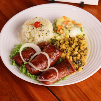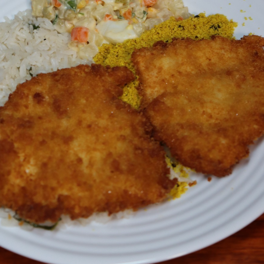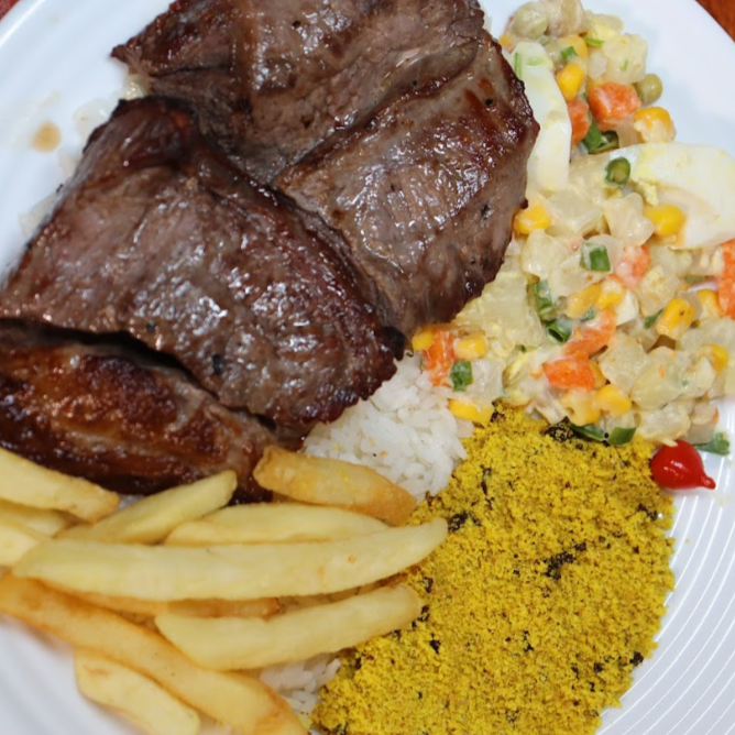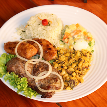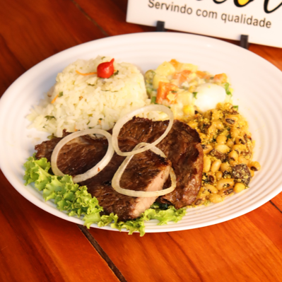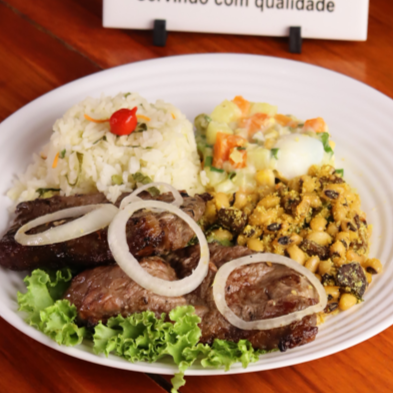 130g á 150g de proteína. Acompanha: arroz, feijão tropeiro, salada e farofinha.