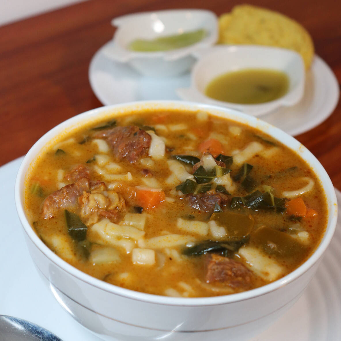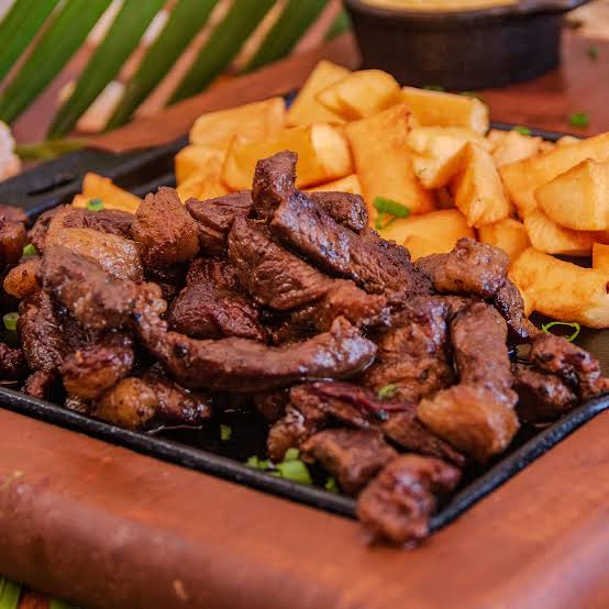 250g de picanha e macaxeira (acompanha 140g de salada, 140g de farofinha de soja, malhos da casa e tucupi)