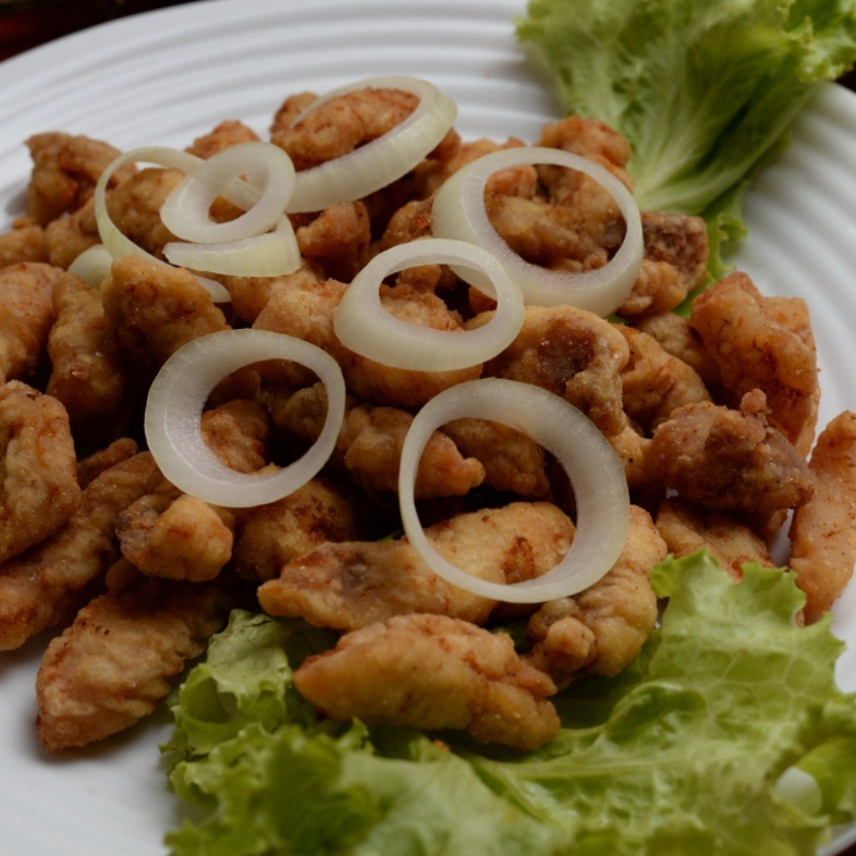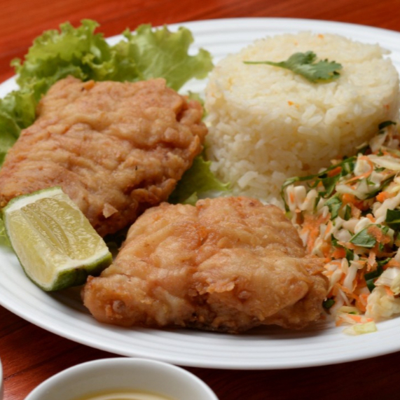 250g de isca de peixe, acompanha farofinha de soja, molho rose, tucupi e limão.