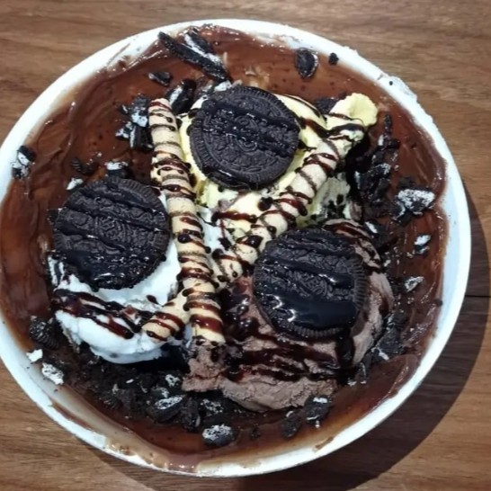 Da taça para o isopor, uma deliciosa camada de brigadeiro gourmet no fundo com pedaços de Biscoitos Oreo Triturado, 1 bola de sorvete a sua escolha e cobertura.