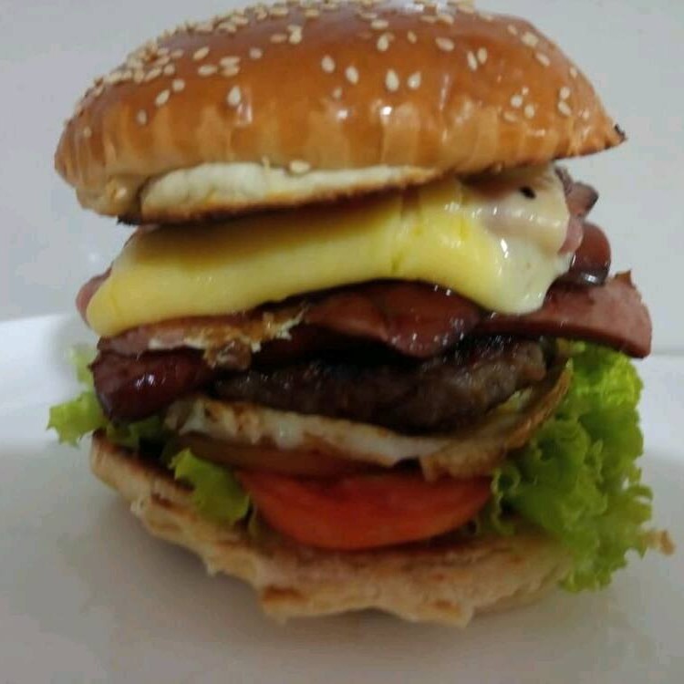 Pão, carne 130, ovo , tomate, alface.