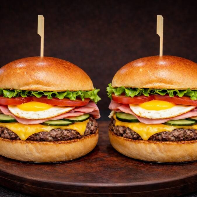 Combo com 2 deliciosos X-Burguer completos no pão macio com carne suculenta, queijo, presunto, ovo, alface e tomate.