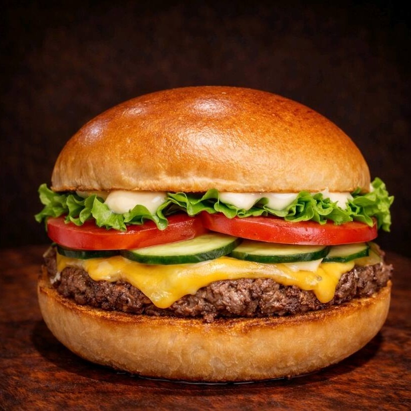 Hambúrguer no pão macio com carne suculenta, queijo derretido e molho especial.