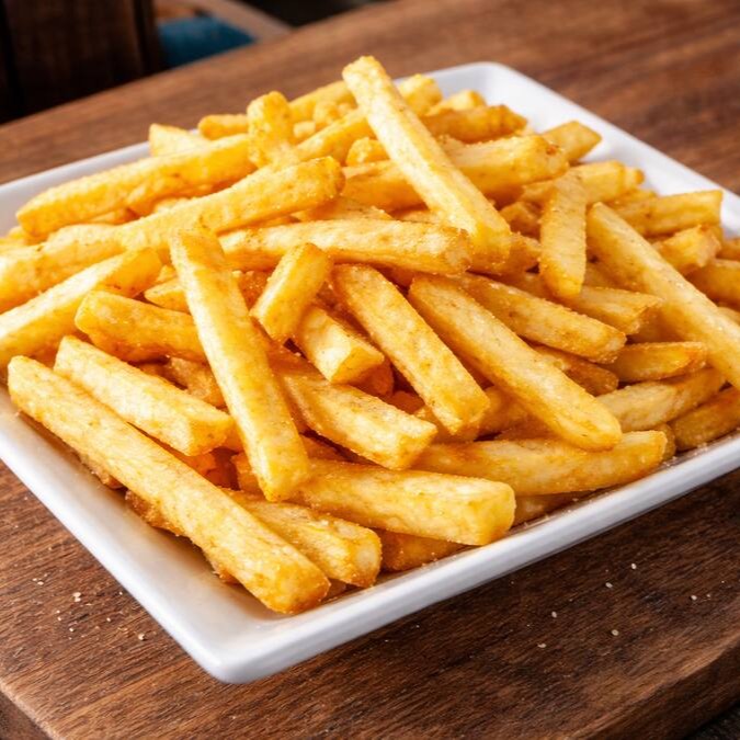 Porção de batata frita dourada, crocante por fora e macia por dentro. Perfeita para acompanhar seu lanche.