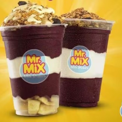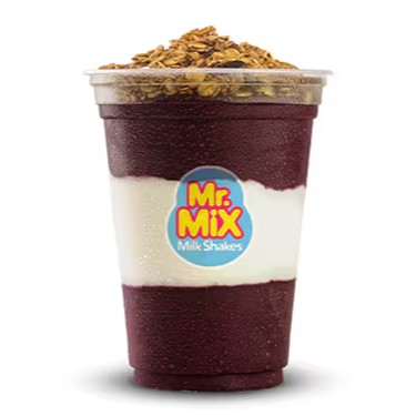 O Original sorvete Mr Mix que você conhece e adora com a energia do açaí e granola. Nosso delicioso Açaí Mesclado vem com: açaí, sorvete de baunilha e granola.