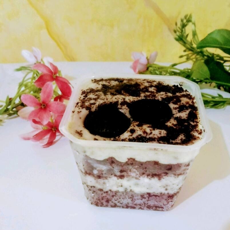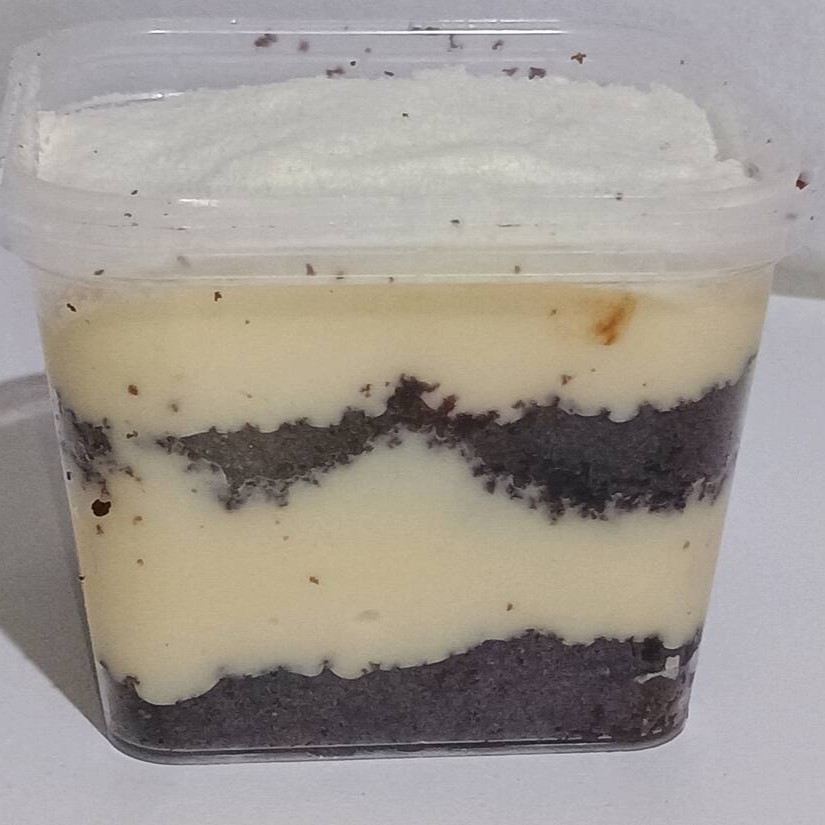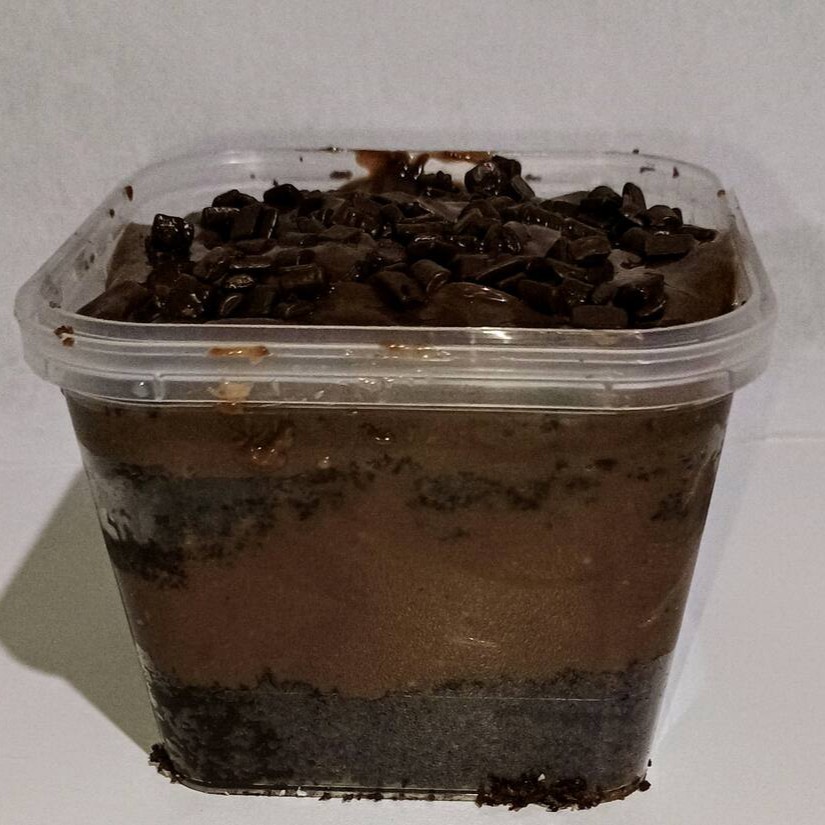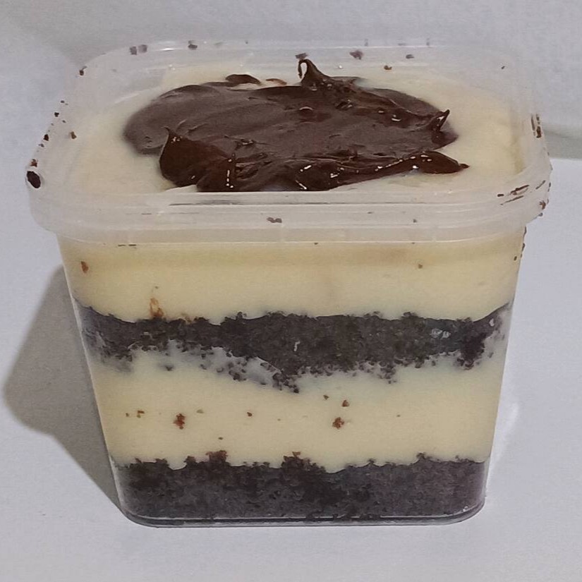 Massa de chocolate molhadinha com brigadeiro de leite Ninho com pedaço de Oreo entre as camada serve 1 pessoa