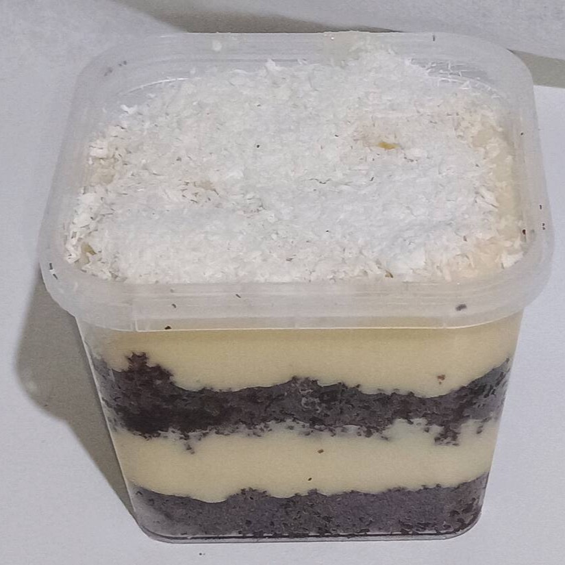 Com uma massa de chocolate molhadinha com duas camada de recheio de Coco cremoso e Coco ralado por cima serve 1 pessoa