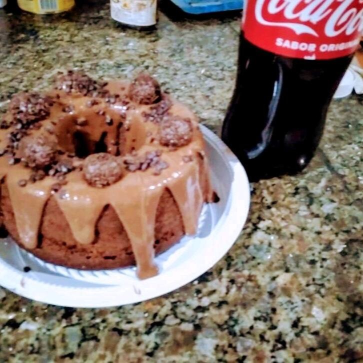 Um bolo de chocolate super fofinho com cobertura cremosa de chocolate serve até 4 pessoas serve em média 4 pessoas tem a opção coca cola zero 1/5