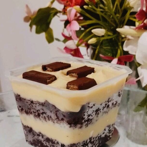 Com massa de chocolate molhadinha e creme de Ninho e creme de chocolate cremoso e delicioso serve 1 pessoa 250g