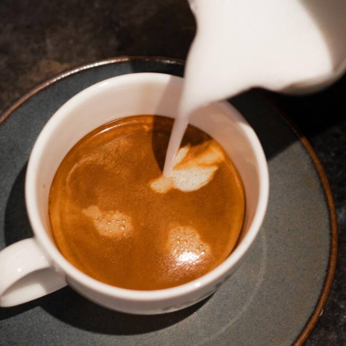 Preparado a partir de grão moído santa Mônica, leite vaporizado e crema.