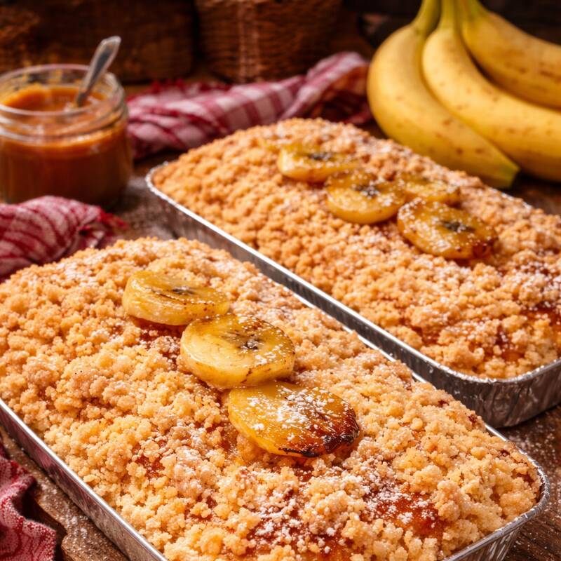 Cuca alemã de massa macia e dourada, recheada com banana, doce de leite cremoso e farofa crocante amanteigada. Um doce caseiro, aconchegante e perfeito para acompanhar um café quentinho.