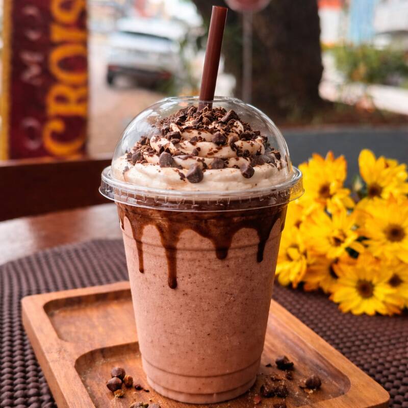 Frapê supercremoso feito com sorvete de creme e cappuccino, batido com calda de chocolate e finalizado com chantilly e um toque de canela. Um blend gelado, intenso e irresistivelmente moderno!