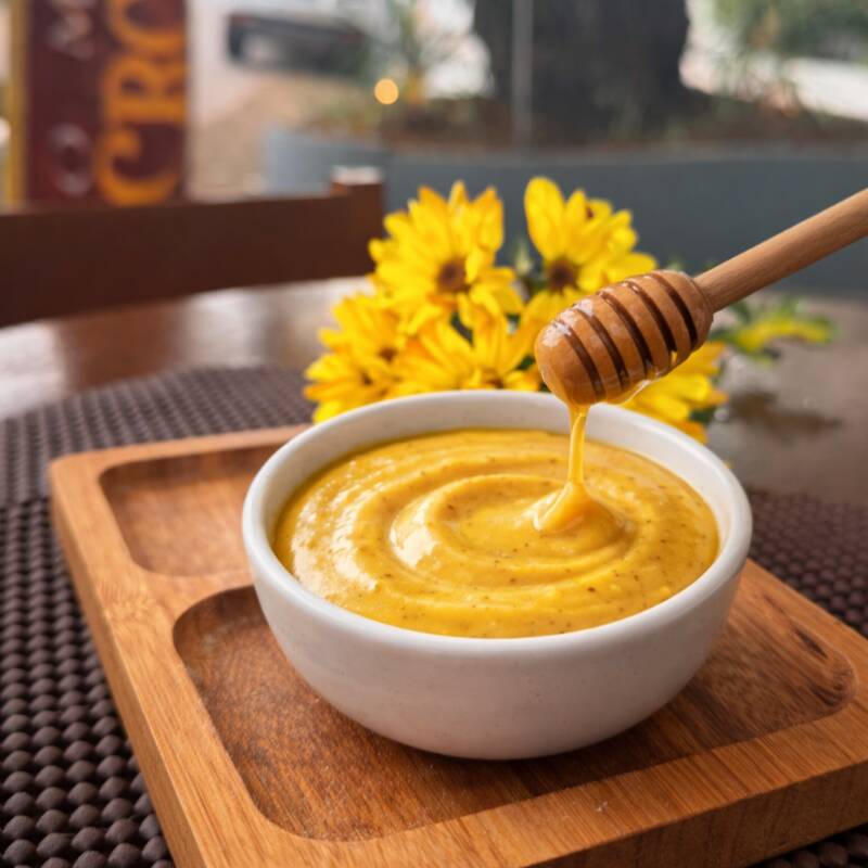 Molho cremoso de mostarda com mel, equilibrando o doce e o levemente picante — perfeito para acompanhar torradas, sanduíches e petiscos .