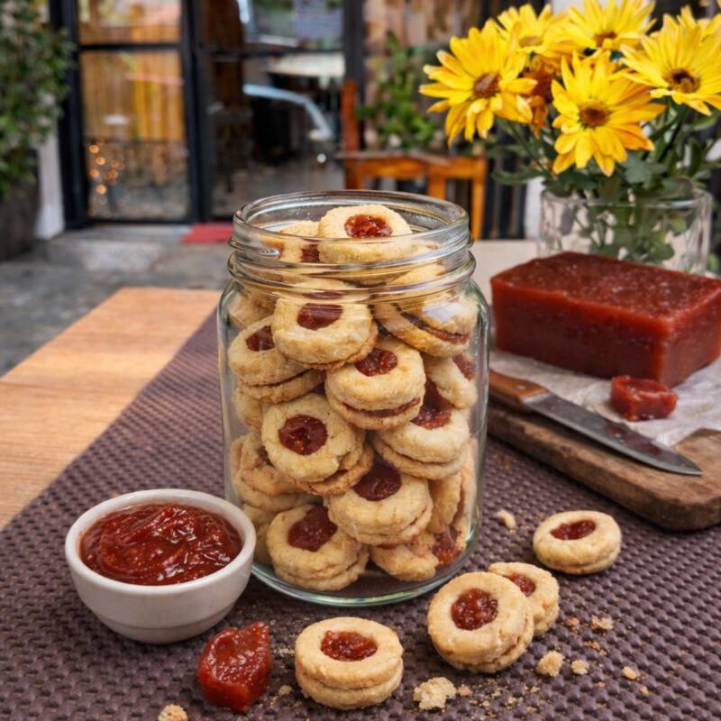 Biscoito amanteigado delicadamente dourado, recheado com doce de goiaba macio e saboroso. Perfeito para acompanhar um café ou adoçar qualquer momento do Dia.