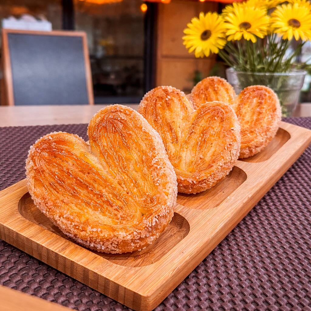 Clássico da panificação fina francesa, o Palmier encanta pela sua massa folhada extremamente crocante e delicadamente caramelizada. Leve, dourado e aromático, entrega o equilíbrio perfeito entre manteiga e doçura em cada mordida — simples, elegante e impossível resistir.