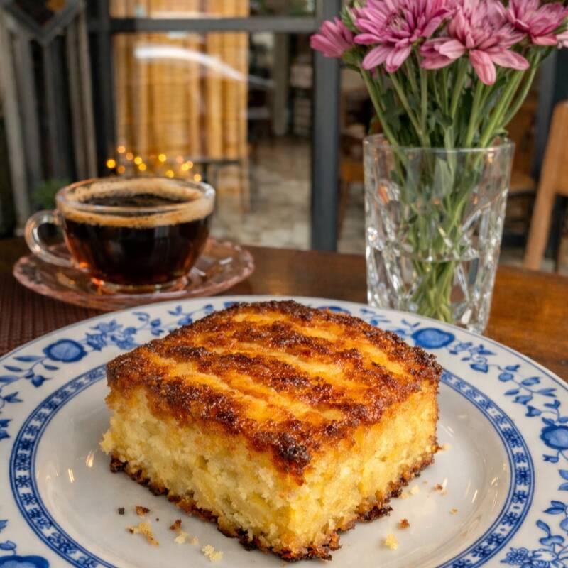O bolo de macaxeira é uma iguaria típica da culinária brasileira, especialmente popular nas regiões Norte e Nordeste. Feito à base de macaxeira (ou aipim/mandioca) ralada, ele tem uma textura úmida e cremosa, sabor marcante e levemente adocicado, realçado pelo leite de coco e pela manteiga.