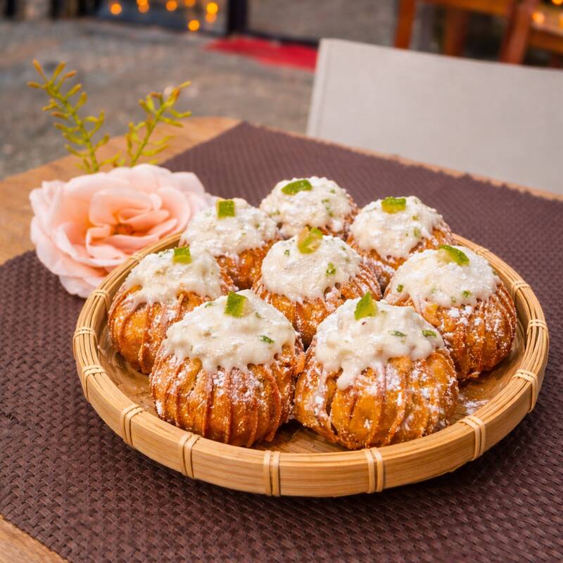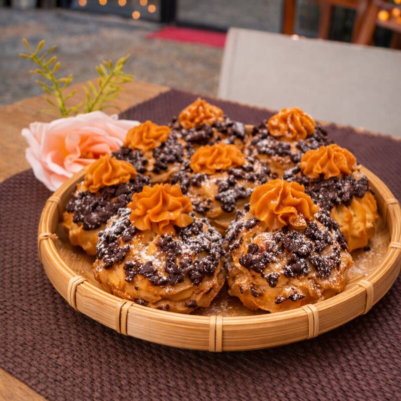 Massa de profiterole (pâte à choux) Casquinha fina e levemente crocante por fora Interior oco, macio e aerado Sabor suave amanteigado Leve e delicada Finalizada com cobertura de glacê Doçura equilibrada (não enjoativa) Textura leve que derrete na boca