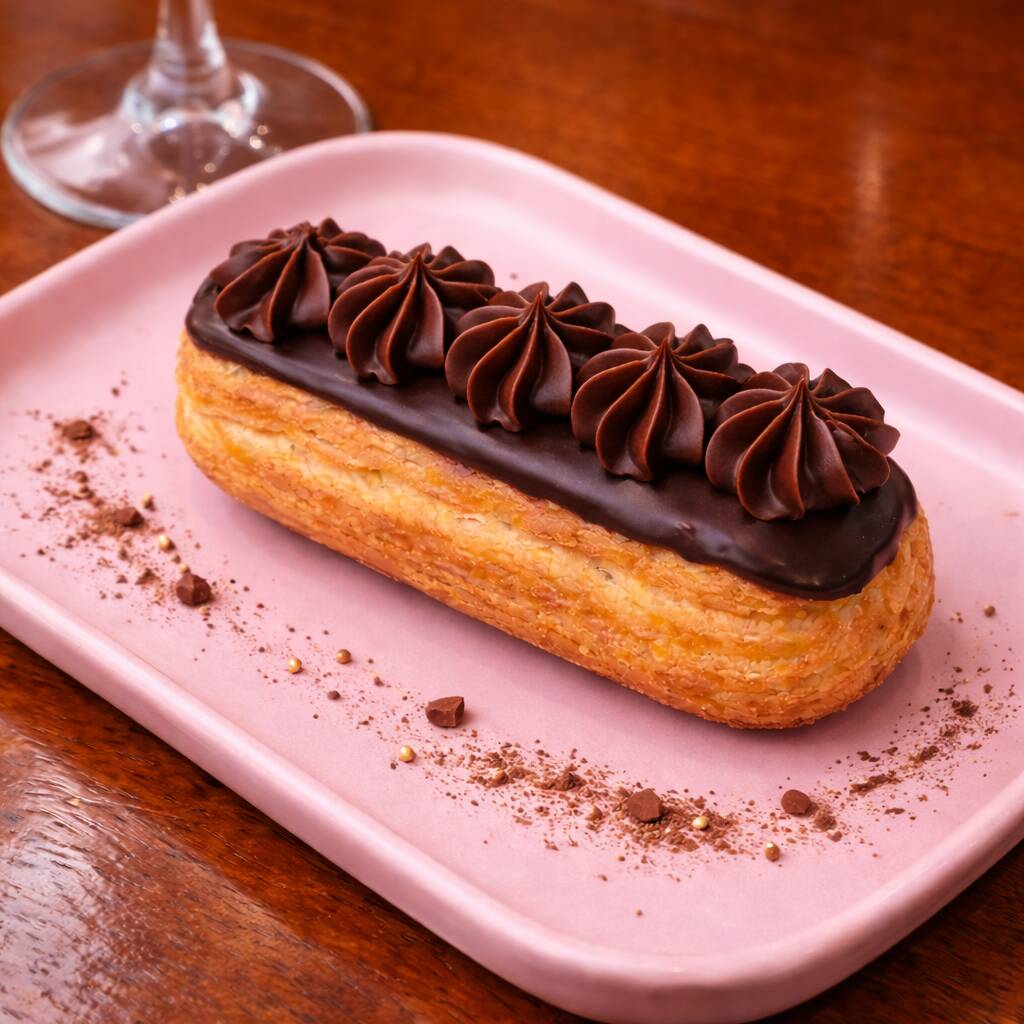 Éclair de massa leve e delicada, recheada com creme suave e finalizada com cobertura clássica. Um autêntico doce da confeitaria francesa, delicado e irresistível.