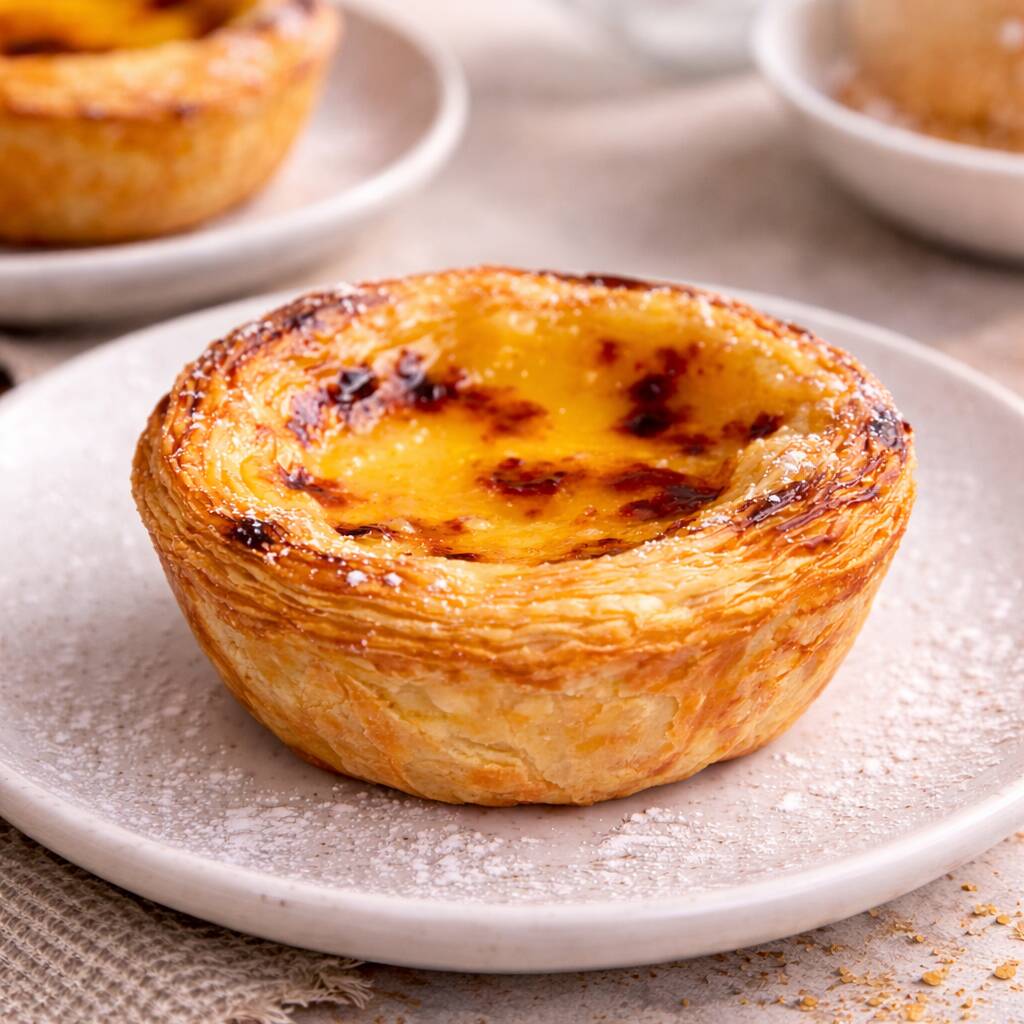 O Pastel de Belém, de 75g, é uma especialidade excepcional da doçaria portuguesa, originária de uma inspiração conventual. Este delicado produto de panificação fina, pertencente à categoria 'Viennoiserie', foi inicialmente criado pelos monges do Mosteiro dos Jerónimos, ostentando uma origem certificada. Cuidadosamente preparado com gema de ovos frescos, leite de qualidade e uma seleção de especiarias aromáticas, este pastel é um verdadeiro ícone da culinária portuguesa, sendo amplamente apreciado por seu sabor único e textura irresistivelmente cremosa.
